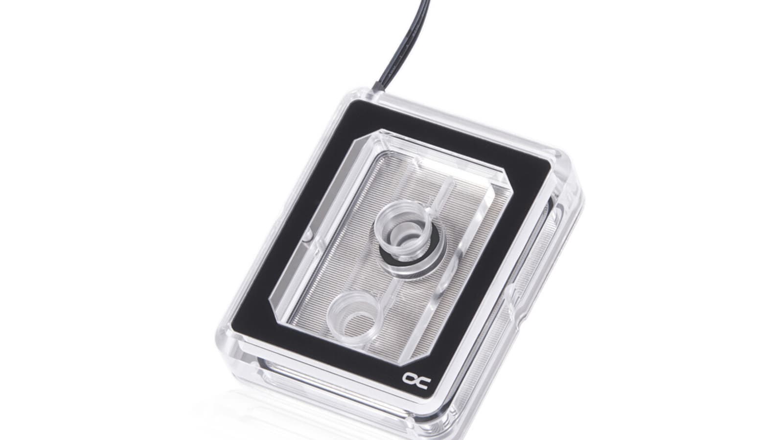 Основание водоблока изготовлено из меди и никелировано. На участке размерами 42 x 58,6 мм сформирован массив микроканалов, образуемый 147 ребрами толщиной всего 0,2 мм. Этим обеспечивается высокая эффективность передачи тепла.