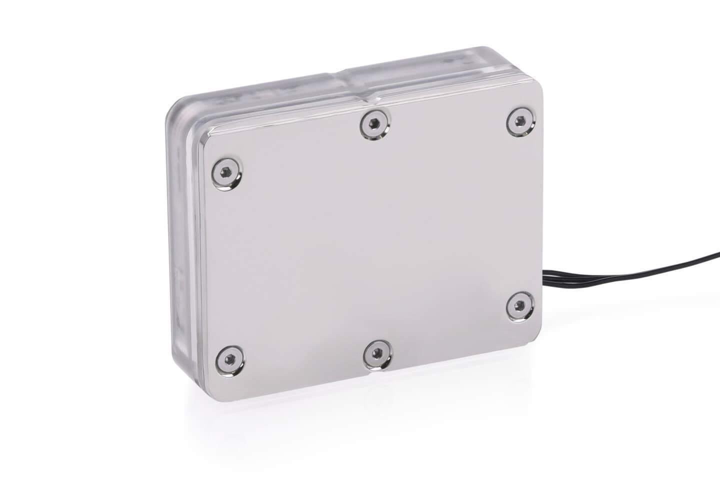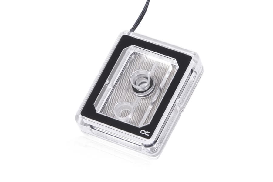 Для подключения к другим компонентам СЖО используется пара стандартных резьбовых портов G1/4". Прозрачная крышка украшена 14 адресуемыми светодиодами RGB. Подключение подсветки осуществляется с помощью кабеля с трехконтактным разъемом JST и встроенным разветвителем для подключения дополнительных компонентов aRGB. В комплект включен переходник для классического трехконтактного разъема 5 В.