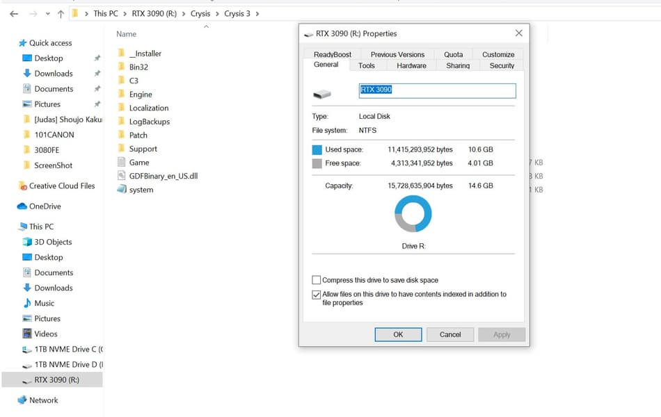 По крайней мере один владелец RTX 3090 утверждает, что провернул такой фокус посредством ПО VRAMdrive под названием GPU Ram Drive. Он создал в памяти видеокарты раздел NTFS объёмом 15 ГБ и установил на него Crysis 3.