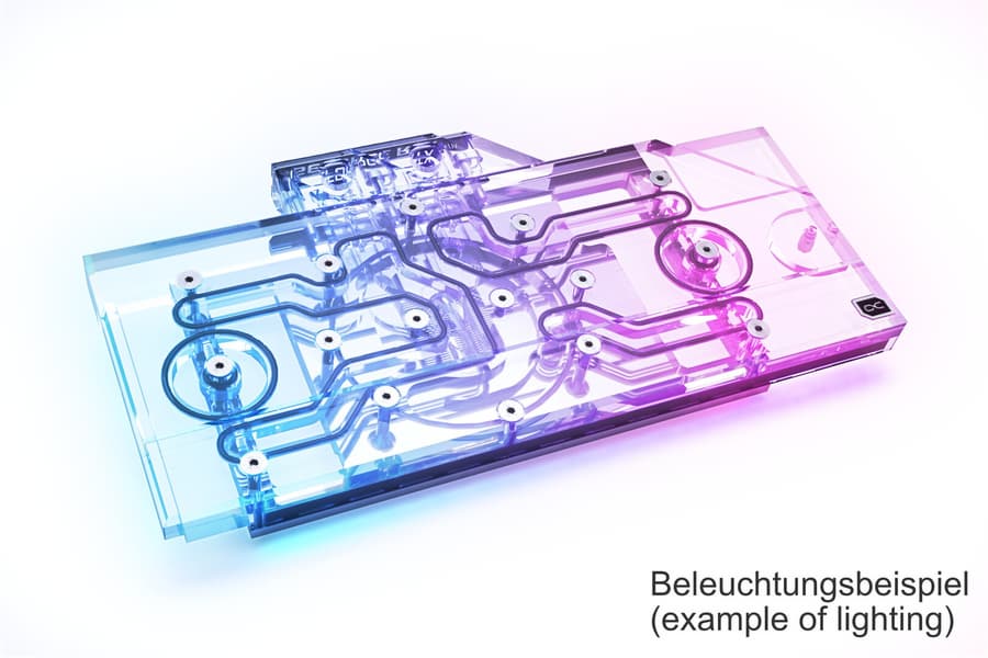 Основание водоблока изготовлено из меди и никелировано, а материалом крышки служит прозрачный пластик. Водоблок покрывает все компоненты, требующие охлаждения: графический процессор, память и регуляторы напряжения. В комплект включены специальные термопрокладки Ultra Soft толщиной 1 мм, по словам производителя, особенно хорошо прилегающие к компонентам. После нагрева они ведут себя как термопаста, обеспечивая максимально эффективную теплопередачу. Кроме того, в комплекте есть металлическая пластина, закрепляемая на тыльной стороне платы.