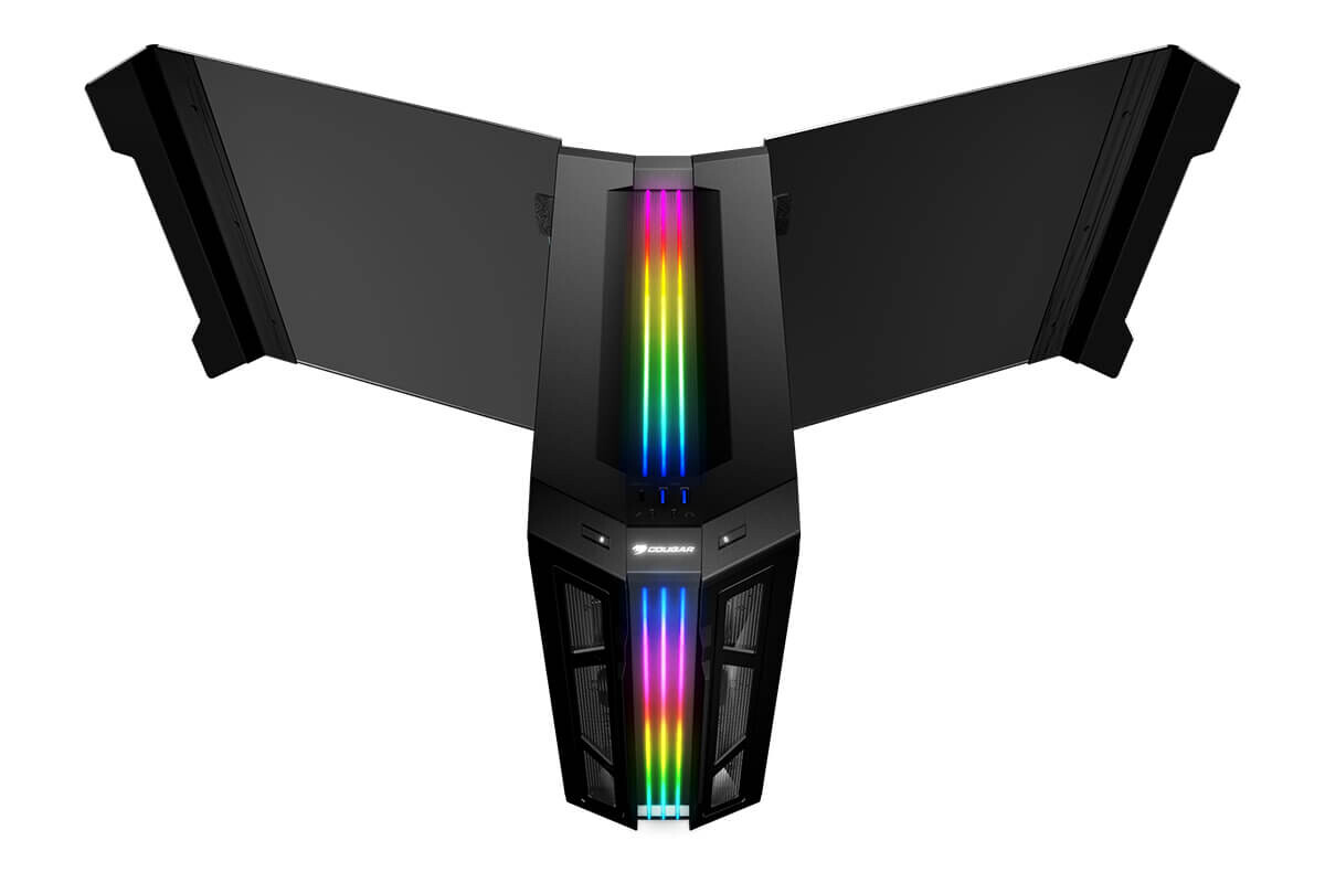 Компания Cougar представила компьютерный корпус Gemini T Pro, рассчитанный на системные платы типоразмера mini-ITX, microATX и ATX. В дизайне корпуса обращает на себя внимание симметрия относительно продольной оси и наличие светодиодной подсветки ARGB не только на передней, но и на верхней панели.