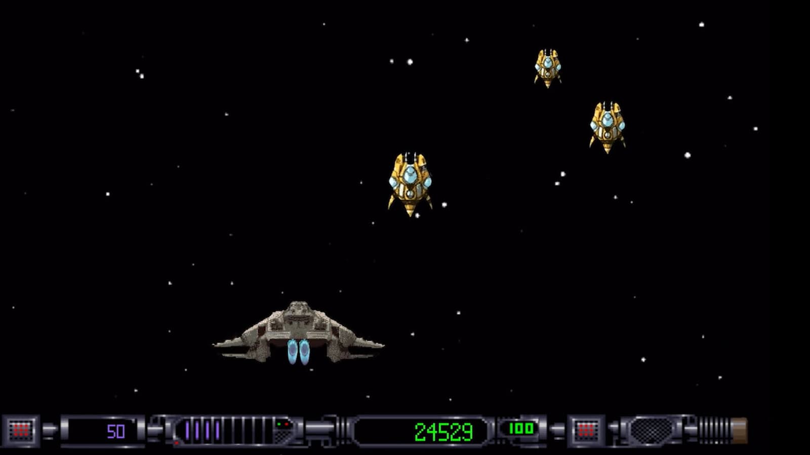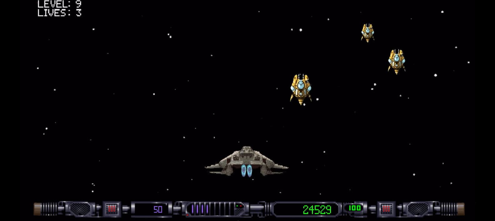 В ролике нам показывают двухмерную аркадную игру, в которой космический корабль уничтожает противников. В какой-то момент счётчик в левом нижнем угла достигает отметки 90 и действие переносится уже в трёхмерное окружение.