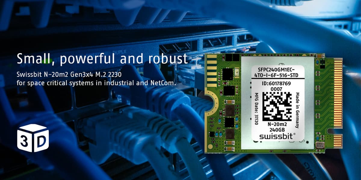 Швейцарская компания Swissbit, называющая себя единственным независимым европейским производителем накопителей и встраиваемых решений для требовательных приложений интернета вещей, недавно представила твердотельный накопитель N-20m2.
