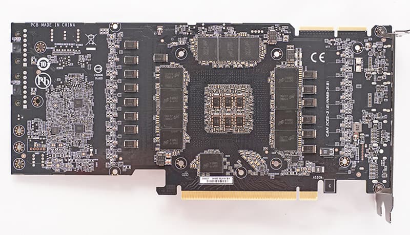 Как можно видеть, система охлаждения включает достаточно крупный медный радиатор, тепловую трубку и испарительную камеру в основе. А примерно половина печатной платы прикрыта термопрокладками.