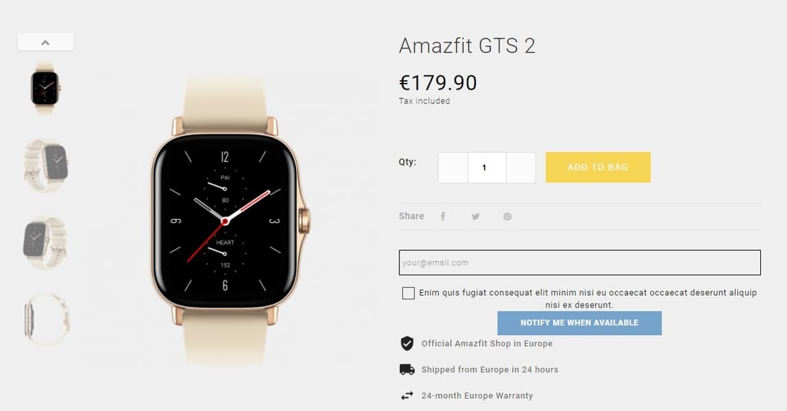 Судя по официальному сайту Huami, Amazfit GTR 2 и GTS 2 будут в Европе предлагаться по одинаковой цене — 180 евро. Ну а продажи должны начаться уже скоро. Для сравнения, на домашнем рынке устройства стоят 127 евро в эквиваленте. Нужно отметить, что у GTR 2 две версии. В 180 евро оценена базовая, а вторая, судя по рынку Китая, окажется примерно на 15 евро дороже.