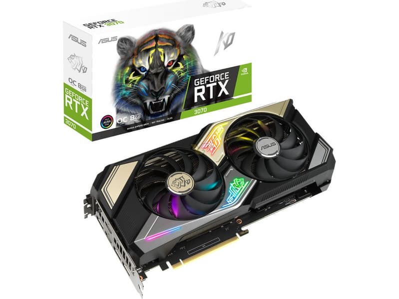 С технической стороны можно отметить систему охлаждения с двумя вентиляторами и наличие пяти видеовыходов: трех DisplayPort и двух HDMI. Карта толщиной 2,5 слота оснащена двумя 8-контактными разъемами дополнительного питания. Тактовые частоты пока не названы. Продажи Asus RTX 3070 KO, вероятно, начнутся 29 октября, когда Nvidia официально представит новую модель.