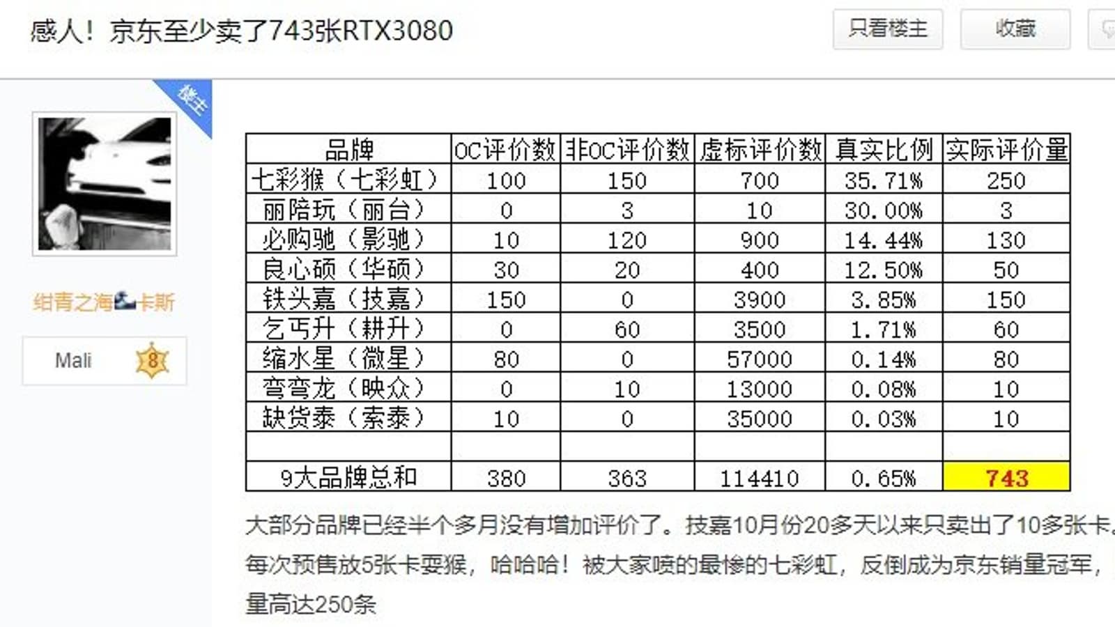 Как пишет китайский источник, за практически полный месяц через крупнейшую онлайновую площадку Китая было продано всего 743 видеокарты — это 0,65% требуемого объема запасов различных моделей. Достаточно просто представить аудиторию JD.com, чтобы понять, что 743 GeForce RTX 3080 — это мизерная капля в огромном море. В Сети уже звучали заявления о том, что дефицит RTX 3080 продлится до начала следующего года, и, судя по последним данным, все так и будет.