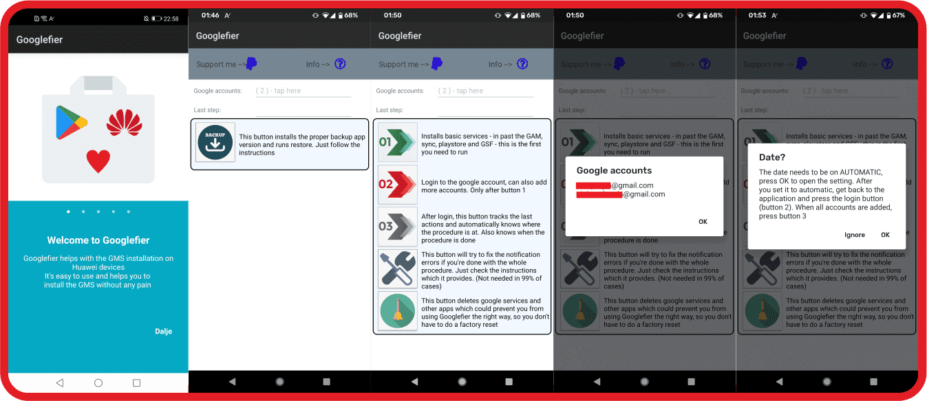Важно отметить, что приложение Googlefier не работает со смартфонами под управлением EMUI 11. Это приложение подходит только для смартфонов с более ранними версиями EMUI. Также разработчики рекомендуют перед установкой приложения выполнить сброс настроек до заводских, если вы раньше пробовали установить Google Mobile Services другими способами.