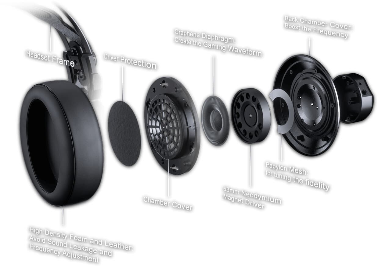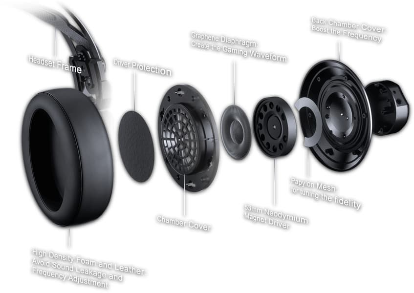 В наушниках используются 53-миллиметровые излучатели с графеновой диафрагмой, размещенные в камере, улучшающей отдачу на низких частотах. В комплекте есть амбушюры из мягкой кожи и из полиэфирной ткани. Диапазон воспроизводимых частот заявлен равным 20-20 000 Гц, чувствительность — 116 дБ при 1 кГц, импеданс — 32 Ом. На съемной штанге установлен однонаправленный конденсаторный микрофон диаметром 9,7 мм. Его чувствительность равна -113 дБ на частоте 1 кГц, а частотная характеристика тоже заявлена равной 20-20 000 Гц. Для подключения гарнитуры используется кабель с тройной изоляцией каждого многожильного пучка. Цену новинки производитель не называет.
