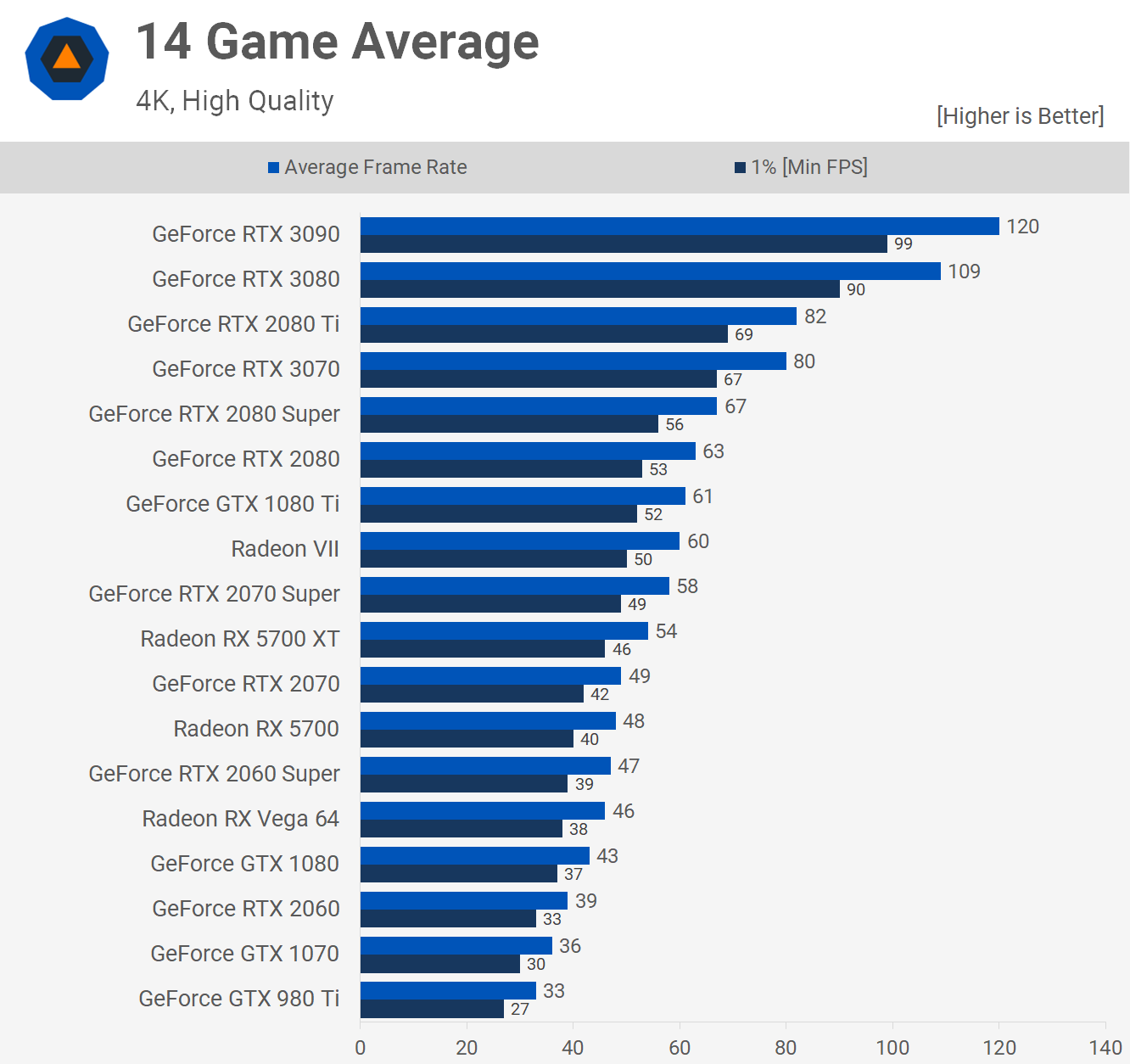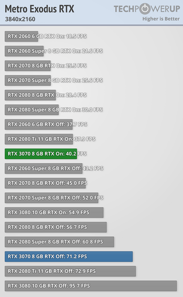 Как можно видеть, с сокрушением всё же не сложилось, но карты показывают чуть ли не идентичную производительность. Возможно, Nvidia специально подгоняла параметры новинки для достижения такого эффекта. Правда, у RTX 3070 ощутимо меньше памяти, но неясно, скажется ли это хоть как-то на её производительности в ближайшие годы.