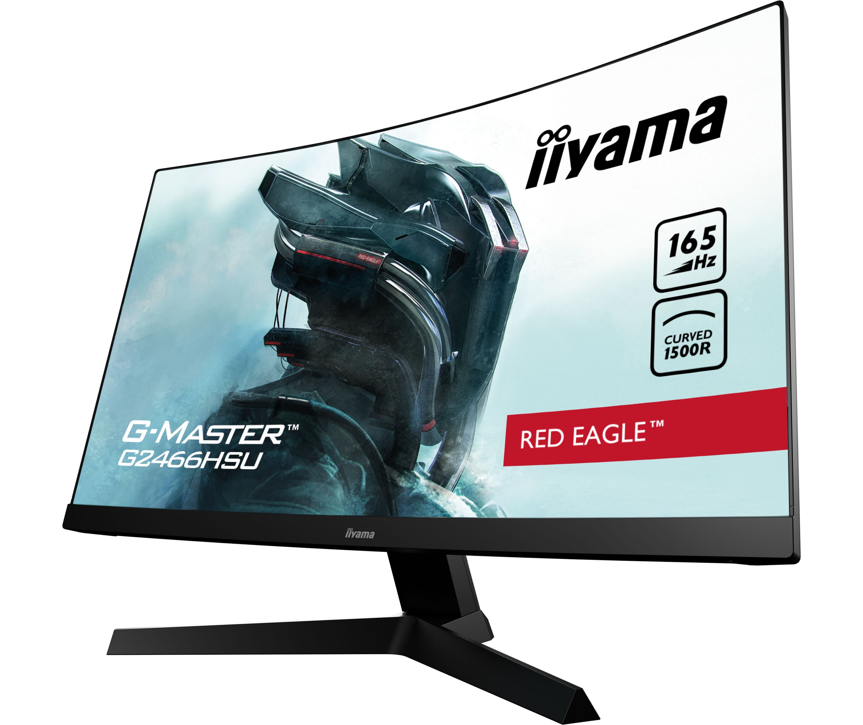 Наряду с монитором G-Master GB3266QSU-B1 Red Eagle в ассортименте iiyama недавно появился еще один игровой монитор с вогнутым экраном. Это модель G-Master G2466HSU-B1 Red Eagle, в которой используется вогнутая панель типа VA размером 23,6 дюйма и разрешением Full HD (1920 х 1080 пикселей).