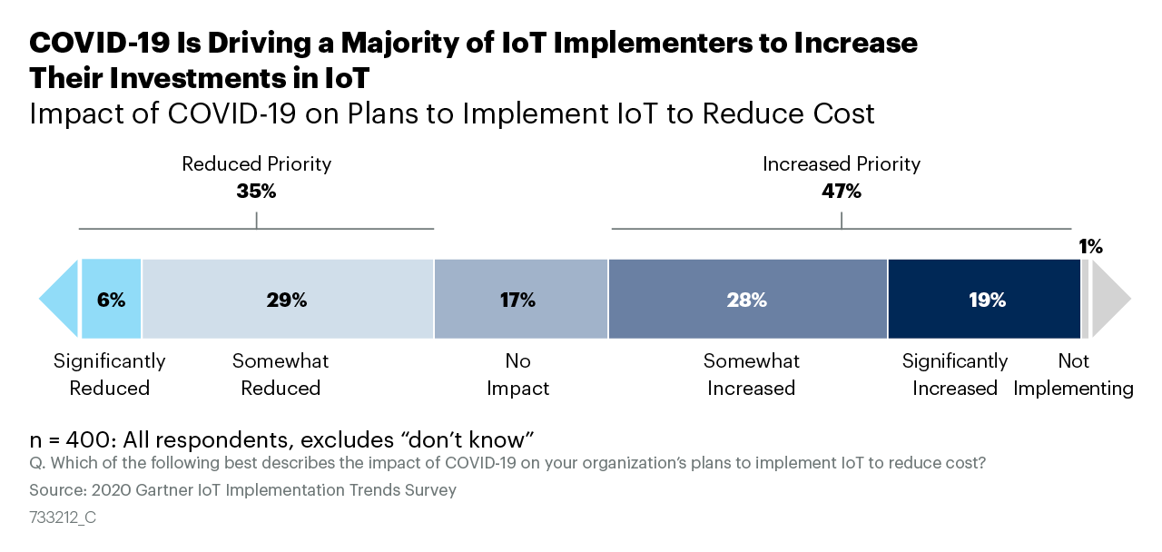 Несмотря на разрушительные последствия COVID-19, 47% компаний планируют увеличить свои инвестиции в интернет вещей (IoT). Такой вывод следует из недавнего опроса, проведенного Gartner в США, Великобритании, Германии, Австралии, Сингапуре и Индии.