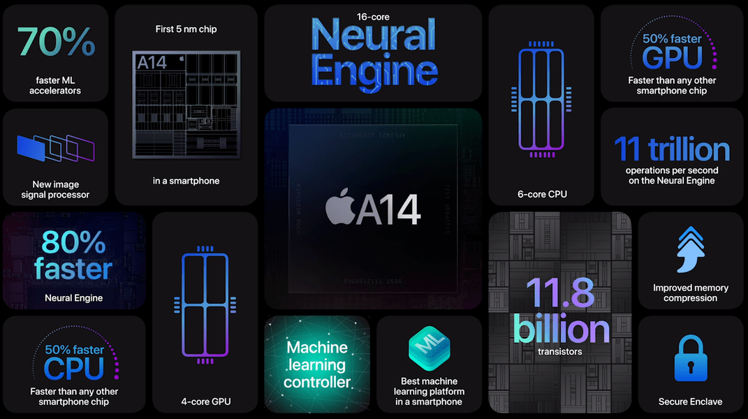 Apple A14 Bionic — первая пятинанометровая однокристальная система и среди анонсированных, и среди вышедших на рынок.