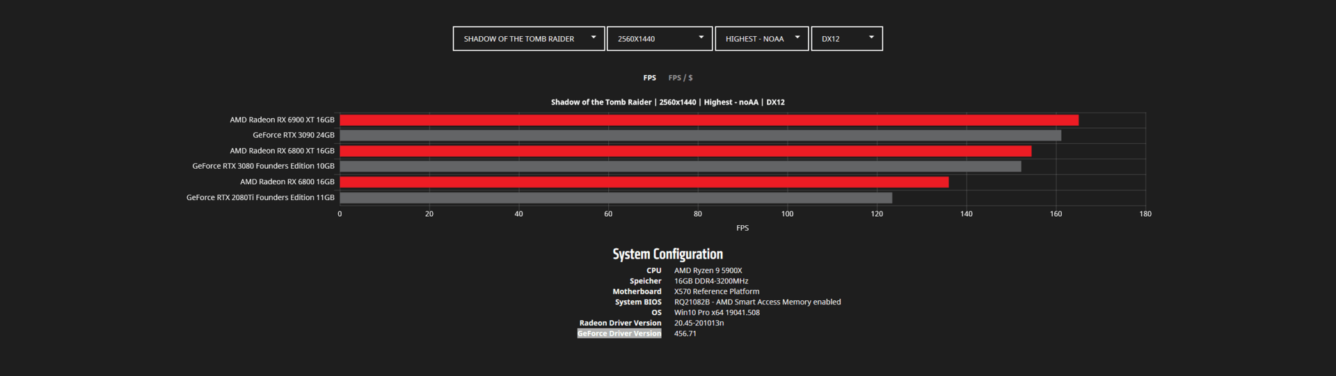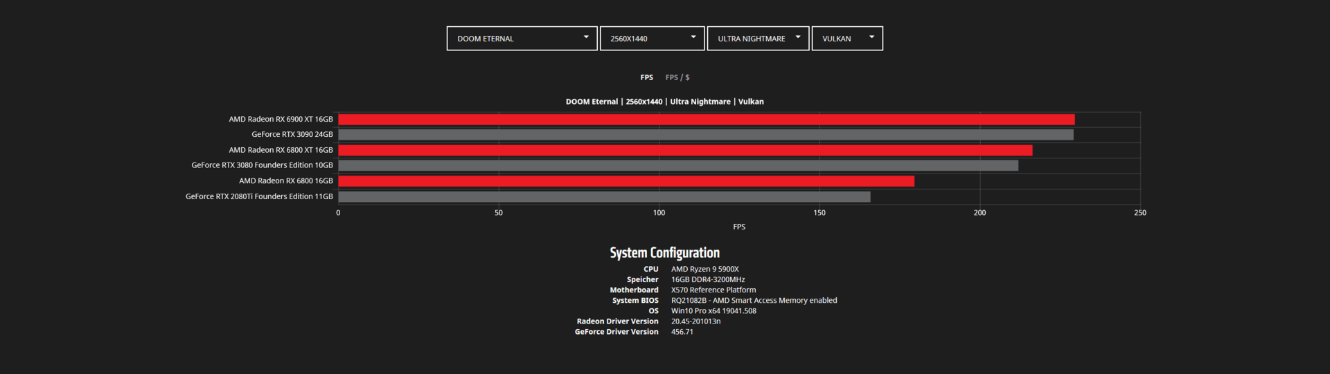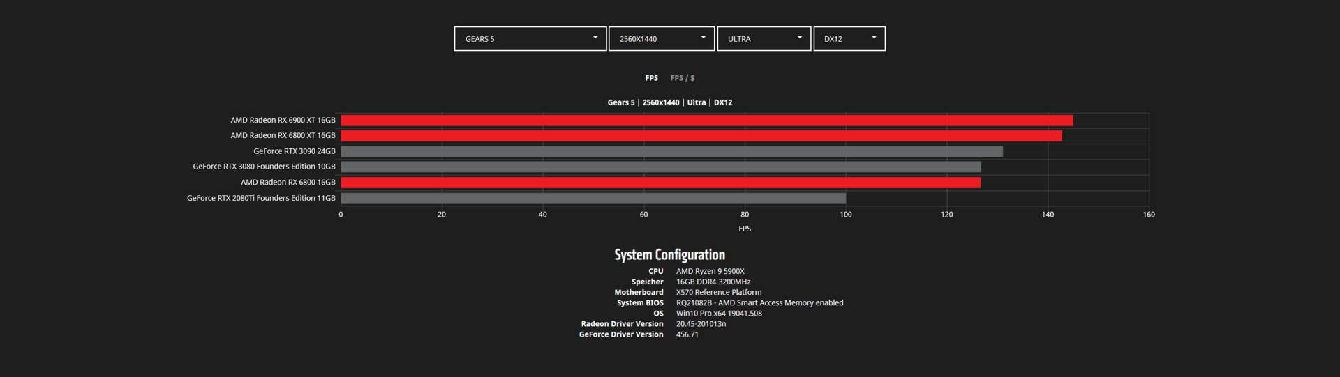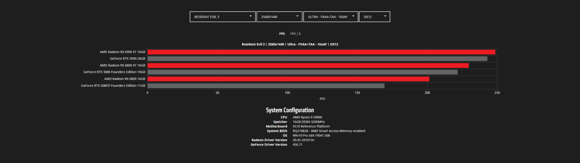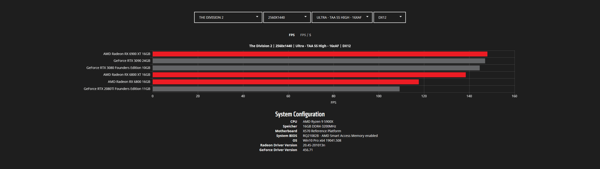 Во время анонса видеокарт Radeon RX 6000 в AMD указывали на то, что они быстрее аналогов Nvidia в играх. Сейчас в Сети появилось больше данных на этот счет. На скриншотах ниже представлены тесты Radeon RX 6800, RX 6800 XT и RX 6900 XT в популярных играх в двух разрешениях — WQHD (2560 х 1440 пикселей) и 4К (3840 х 2160 пикселей).