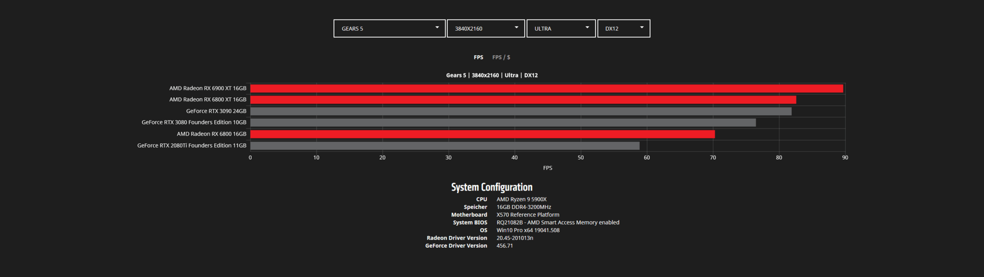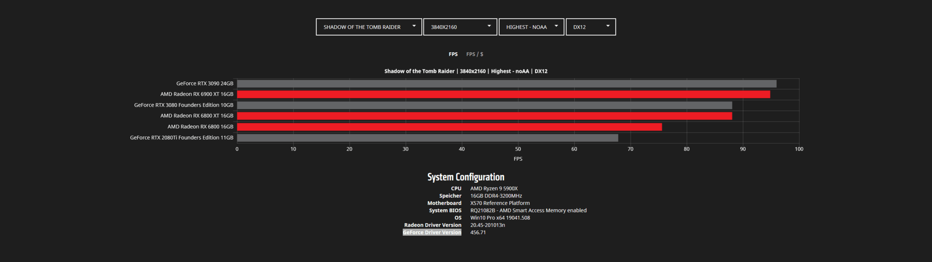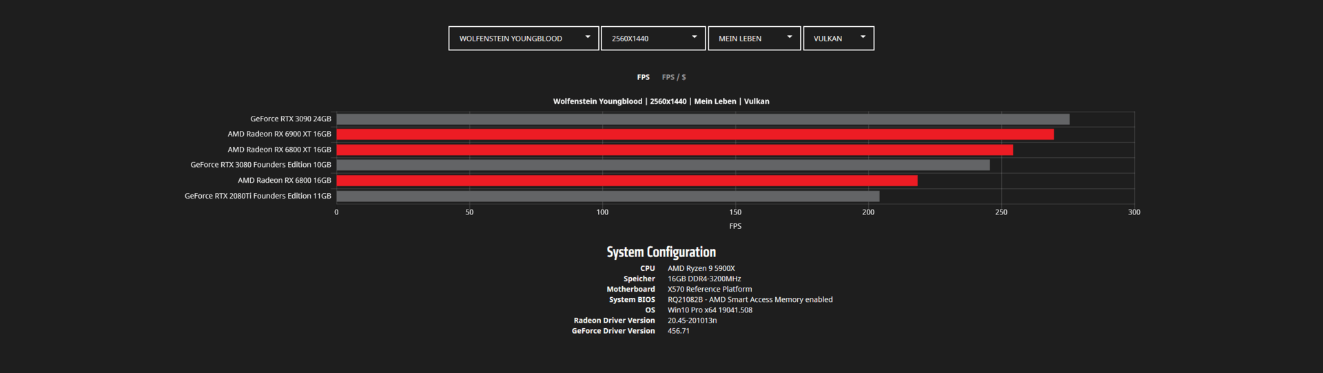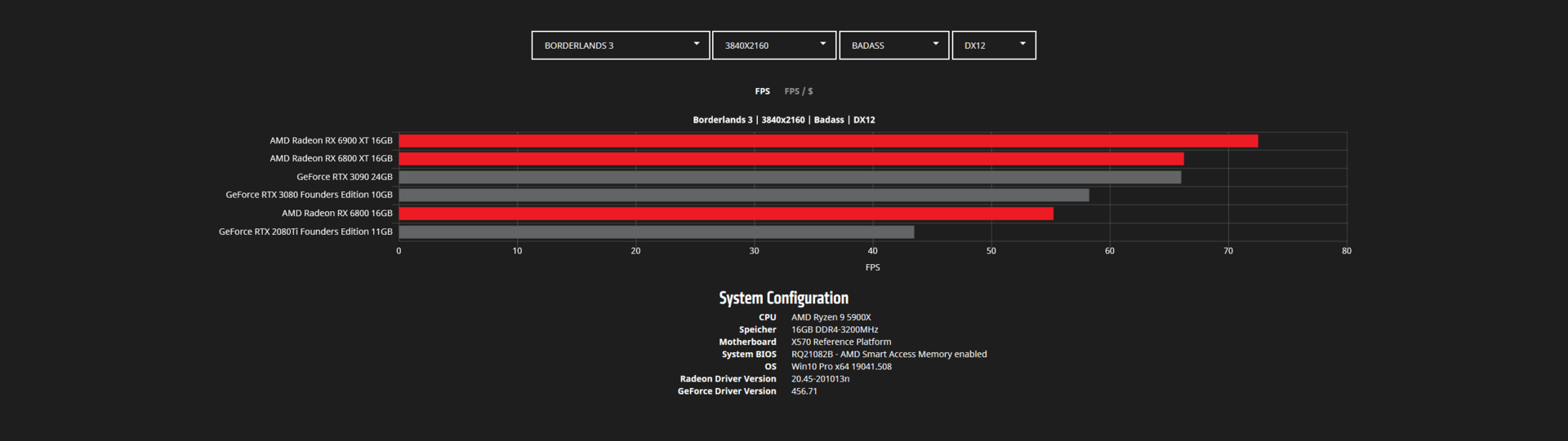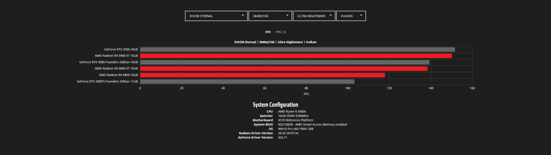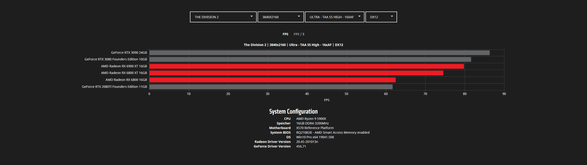 Во время анонса видеокарт Radeon RX 6000 в AMD указывали на то, что они быстрее аналогов Nvidia в играх. Сейчас в Сети появилось больше данных на этот счет. На скриншотах ниже представлены тесты Radeon RX 6800, RX 6800 XT и RX 6900 XT в популярных играх в двух разрешениях — WQHD (2560 х 1440 пикселей) и 4К (3840 х 2160 пикселей).