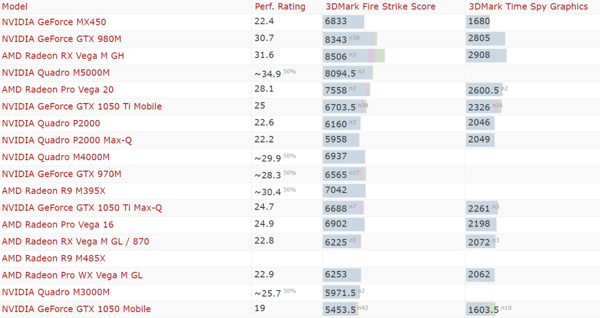 Таблица ниже поможет лучше соотнести эти баллы с другими видеокартами, чтобы понять примерный уровень производительности.