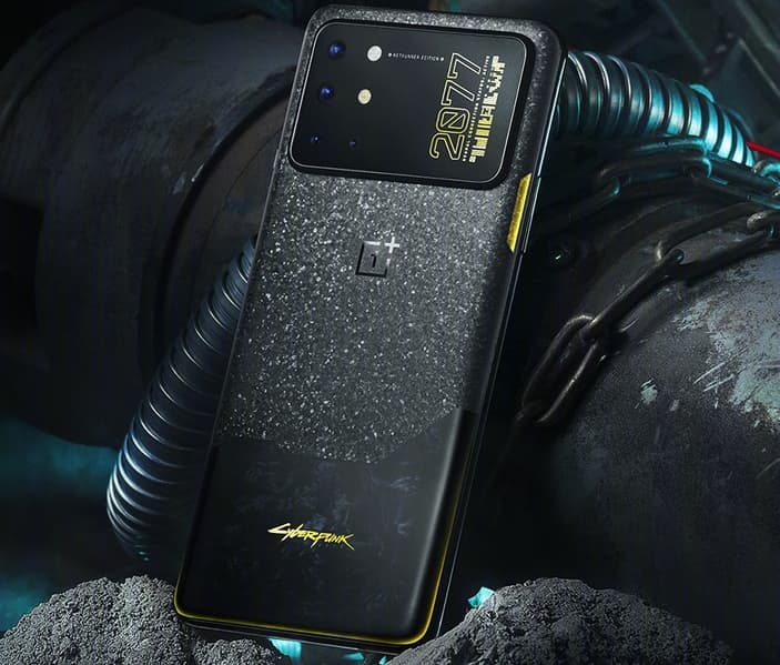 OnePlus 8T Cyberpunk 2077 Limited Edition получил уникальный корпус с «трехступенчатым дизайном», а также 12 ГБ оперативной и 256 ГБ флэш-памяти. Верхняя часть смартфона является стеклянной, она отображает порядок и будущее высоких технологий киберпанка. Средняя часть представляет неизвестную возможность между высокими технологиями и низким уровнем жизни. Нижняя часть отображает ночь, а также сложную и беспорядочная жизнь города.