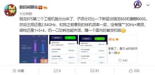 На прошлой неделе мы уже писали о впечатляющих результатах теста однокристально платформы Qualcomm Snapdragon 875 в AnTuTu, а сейчас инсайдер из Китая конкретизировал результаты на примере инженерного образца смартфона, построенного на этой SoC. Судя по этим данным, другим платформам со Snapdragon 875 будет очень сложно тягаться.
