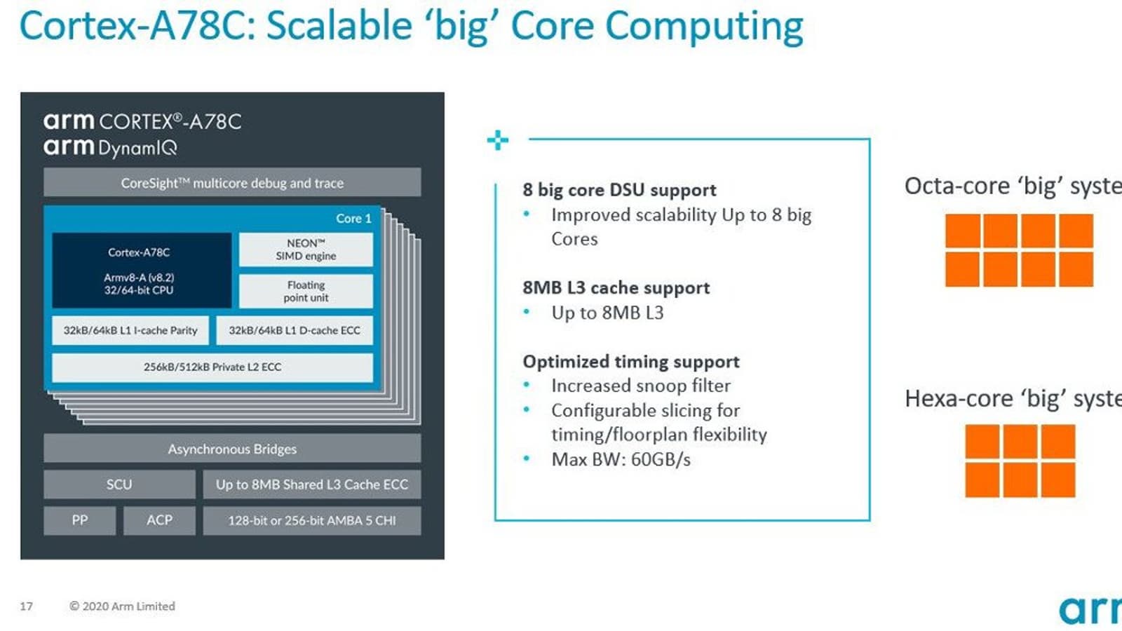 Ядро Cortex-A78C вполне может поспособствовать росту популярности таких устройств. В основе это всё то же очень высокопроизводительное ядро Cortex-A78, которое будет использоваться в новых топовых мобильных SoC, но есть ряд отличий.