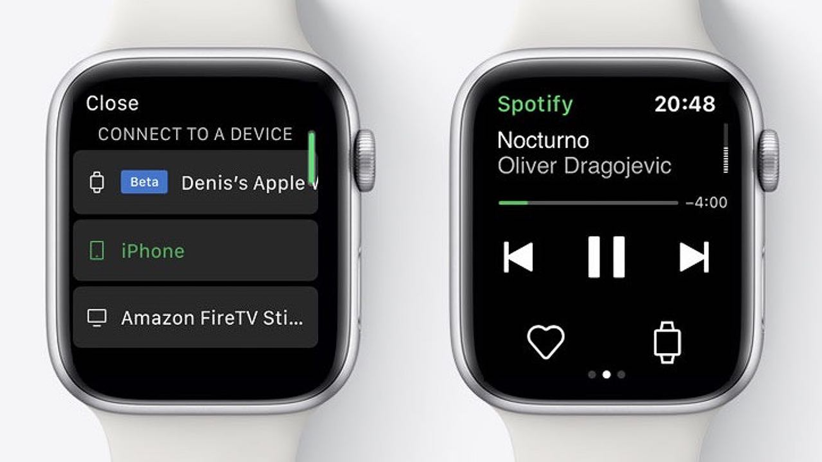 Музыку их Spotify можно транслировать прямо с Apple Watch на наушники Bluetooth, что отлично подходит, когда вам не нужен iPhone, например, в ходе тренировок.