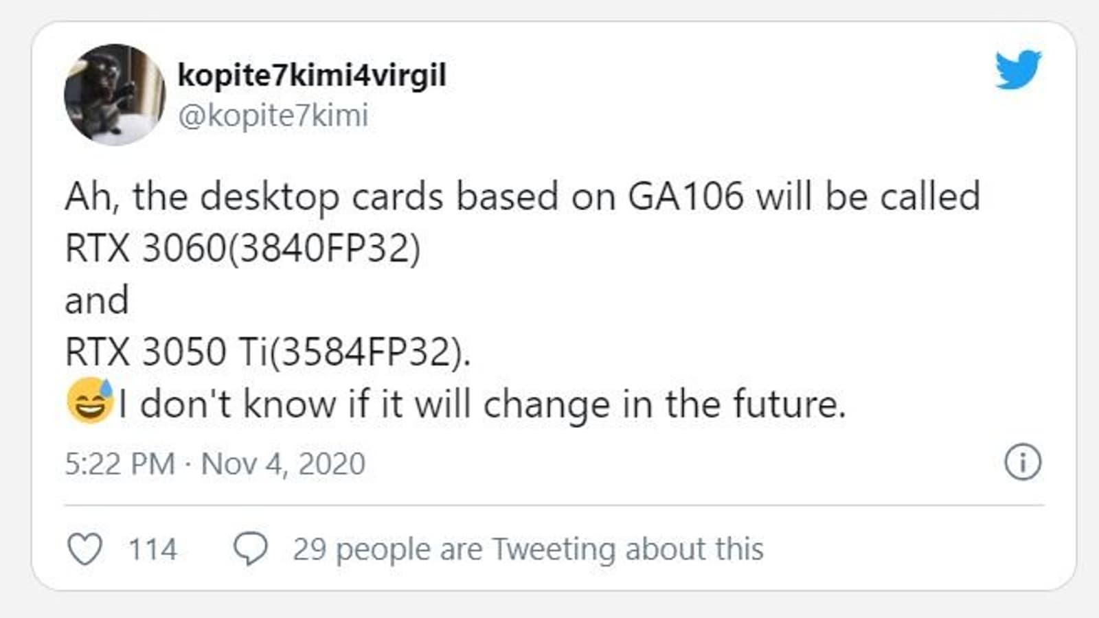 Выход GeForce RTX 3060 ожидается в январе, а вот GeForce RTX 3050 Ti вряд ли появится раньше февраля.