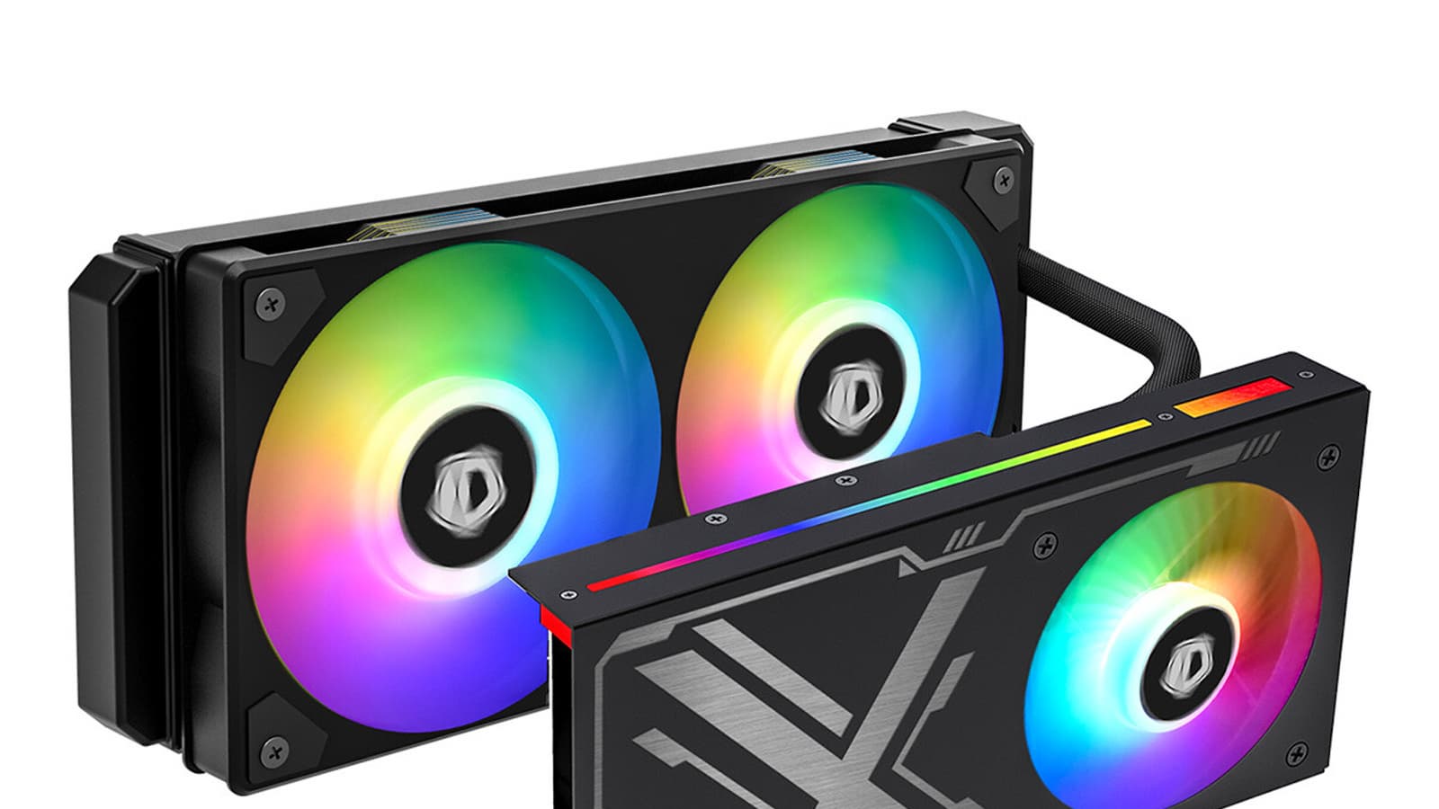 Конструкция IceFlow 240 VGA ARGB включает 240-миллиметровый радиатор со сдвоенным вентилятором IceFan размерами 240 x 120 x 25 мм, украшенным подсветкой ARGB. Скорость вращения вентилятора регулируется с помощью ШИМ в диапазоне 900-2000 об/мин, Подсветкой также украшен тонкий 92-миллиметровый вентилятор, охлаждающий микросхемы памяти и регуляторы напряжения. Он закреплен в металлическом кожухе, прикрывающем водоблок, отводящий тепло от GPU. В верхней части кожуха есть вставка RGB. Вентиляторы и вставку можно подключить к разветвителю ARGB и управлять их работой, используя программное обеспечение системной платы или включенный в комплект контроллер. Помпа закреплена на радиаторе.
