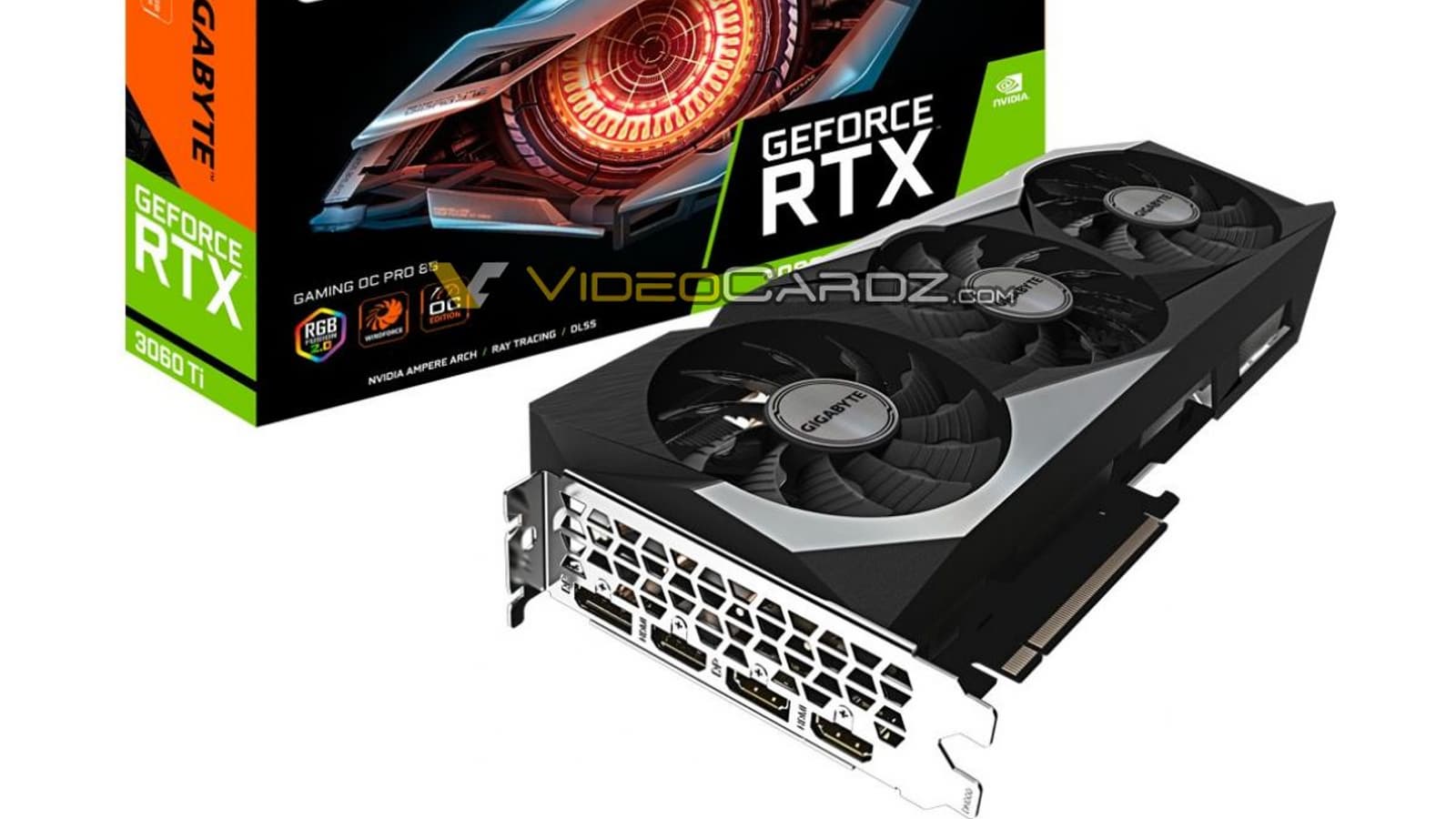 Источник опубликовал рендеры видеокарты Gigabyte GeForce RTX 3060 Ti Gaming OC Pro – первой известной версии GeForce RTX 3060 Ti, система охлаждения которой насчитывает три вентилятора. А в корпусе ПК такая видеокарта занимает пространство чуть больше двух слотов.
