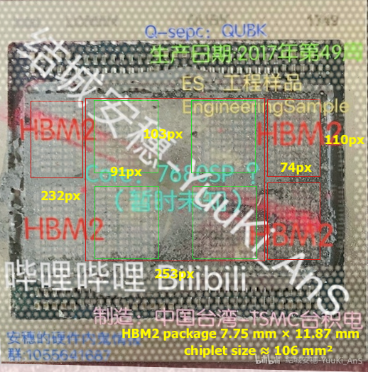 В данном случае термоинтерфейс мешает рассмотреть кристаллы, но их там восемь: четыре кристалла памяти HBM2 и четыре кристалла непосредственно GPU.