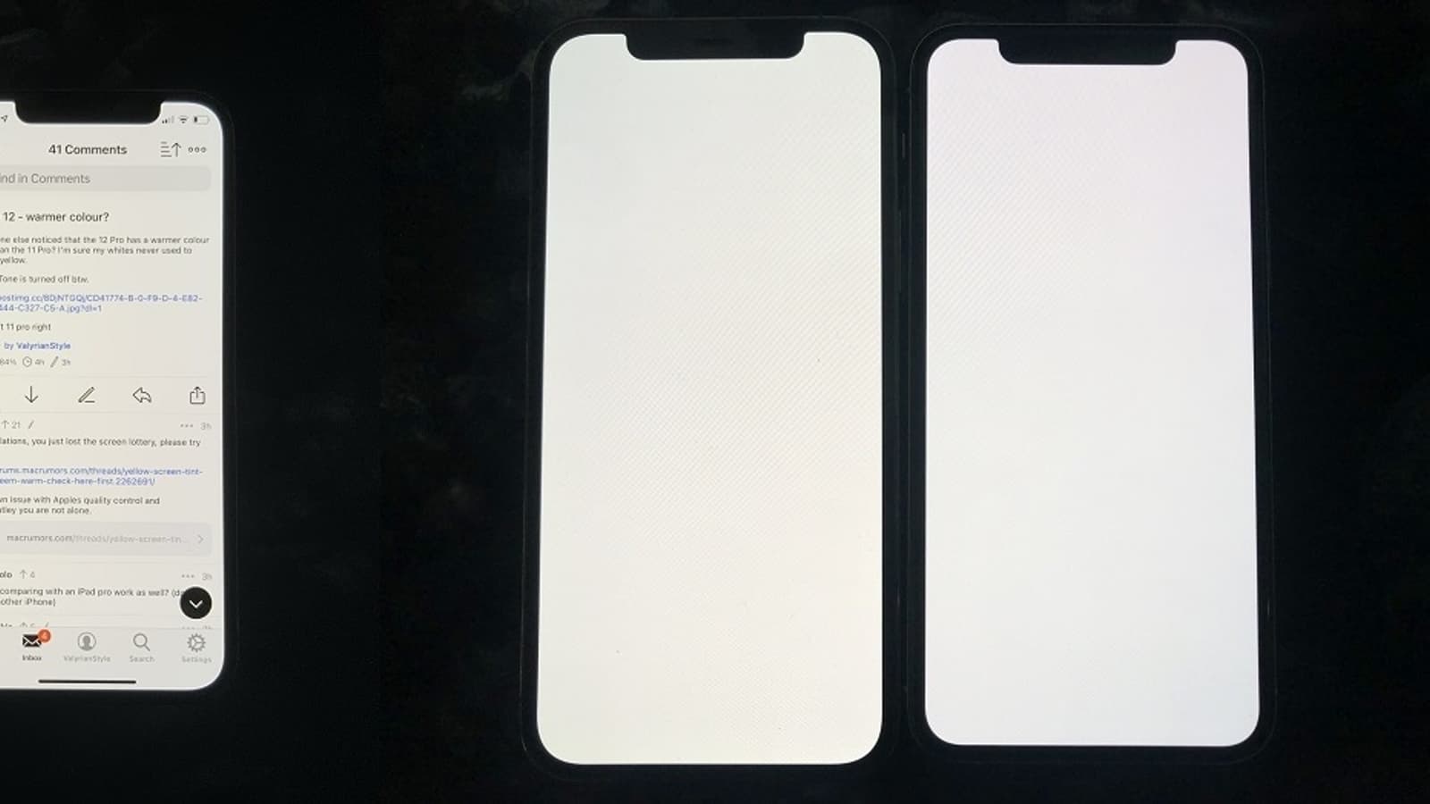Пользователи iPhone 12 и iPhone 12 Pro утверждают, что экраны смартфонов имеют явный желтоватый оттенок, даже если отключить функцию True Tone. Высказываются предположение, что Apple, стараясь поставить на рынок как можно больше смартфонов, которые и так задержались более чем на месяц, понизила требования к качеству комплектующих, в частности, экранов.