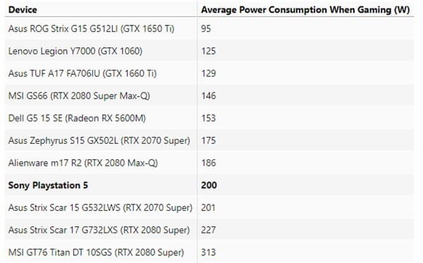Интересно, что примерно столько же – 201 Вт в режиме игры – потребляет геймерский ноутбук Asus Strix Scar 15, оснащенный видеокартой GeForce RTX 2070 Super. А ведь в ноутбуке больше компонентов, которые надо питать энергией. Интересно, что 17-дюймовый Asus Strix Scar с видеокартой GeForce RTX 2080 Super потребляет ненамного больше – 227 Вт.