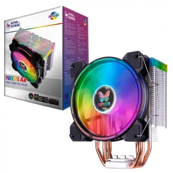 Компания Super Flower, больше известная блоками питания, вышла на рынок воздушных систем охлаждения процессоров с моделью Neon 122. Конструкция изделия включает алюминиевое основание, через которое пропущены четыре медные тепловые трубки диаметром 6 мм, средней частью непосредственно контактирующие с процессором. На концах трубок нанизаны пластины алюминиевого радиатора, на котором закреплен один 120-миллиметровый вентилятор.