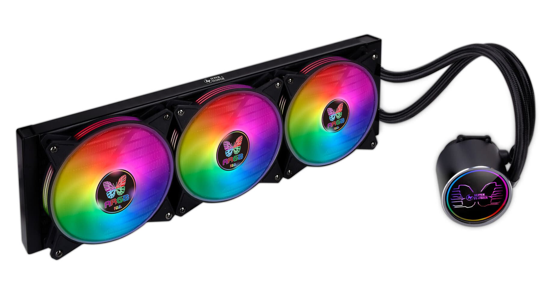 Помимо воздушной системы охлаждения Neon 122 компания Super Flower представила системы жидкостного охлаждения процессоров, получившие названия Neon 240 и Neon 360. Как можно понять по названиям, различие между двумя моделями заключается в длине радиатора: конструкция Neon 240 включает радиатор размерами 240 x 120 мм, а конструкция Neon 360 — размерами 360 x 120 мм. Соответственно на радиаторе закреплено два или три 120-миллиметровых вентилятора.