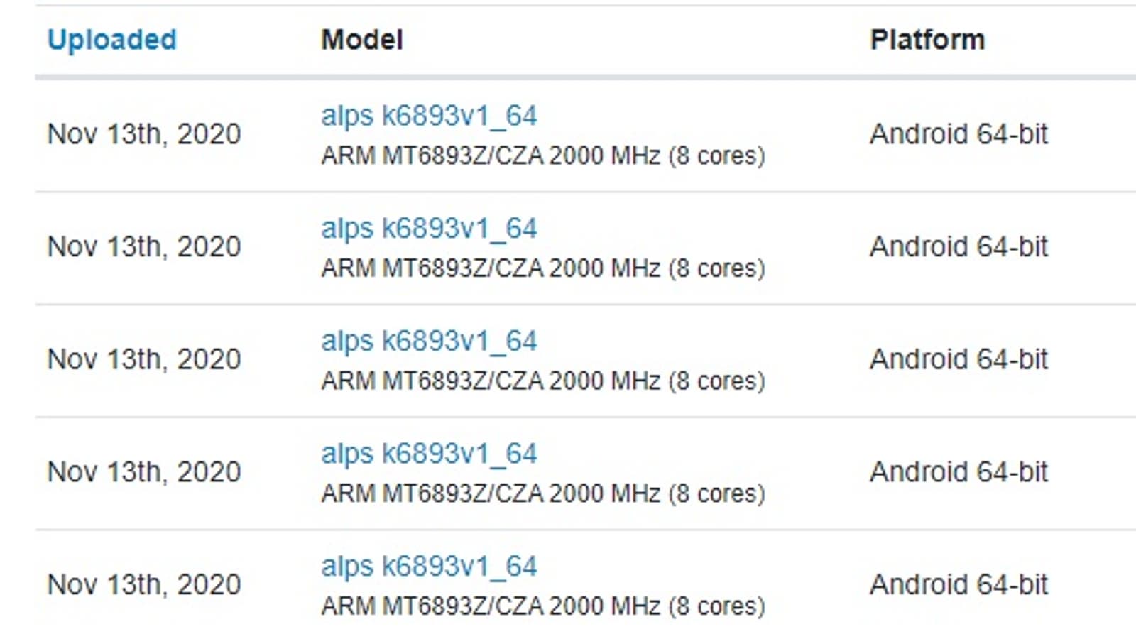 По данным информатора, CPU MT6893 представлен одним ядром Arm Cortex-A78 частотой 2,8 ГГц, тремя ядрами Cortex-A78 частотой 2,6 ГГц и четырьмя ядрами Cortex-A55 частотой 2,0 ГГц. В качестве GPU используется 9-ядерный Arm Mali-G77 MC9. Производительность этой однокристальной системы должна быть близка или аналогична производительности Exynos 1080.