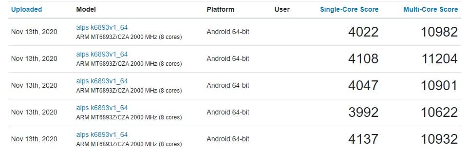 Китайский инсайдер, обещавший на днях скорый выпуск 6-нанометровой однокристальной платформы MediaTek для смартфонов, привел результаты ее производительности в бенчмарке Geekebnch. Как оказалось, SoC называется MT6893 и набирает больше 4100 баллов в однопоточном тесте – этот результат лучше, чем у MediaTek Dimensity 1000+. Результат в многопоточном тесте не такой впечатляющий: чуть больше 11 000 баллов, но он, по словам информатора, еще повысится, так как к моменту выпуска платформа будет доработана.