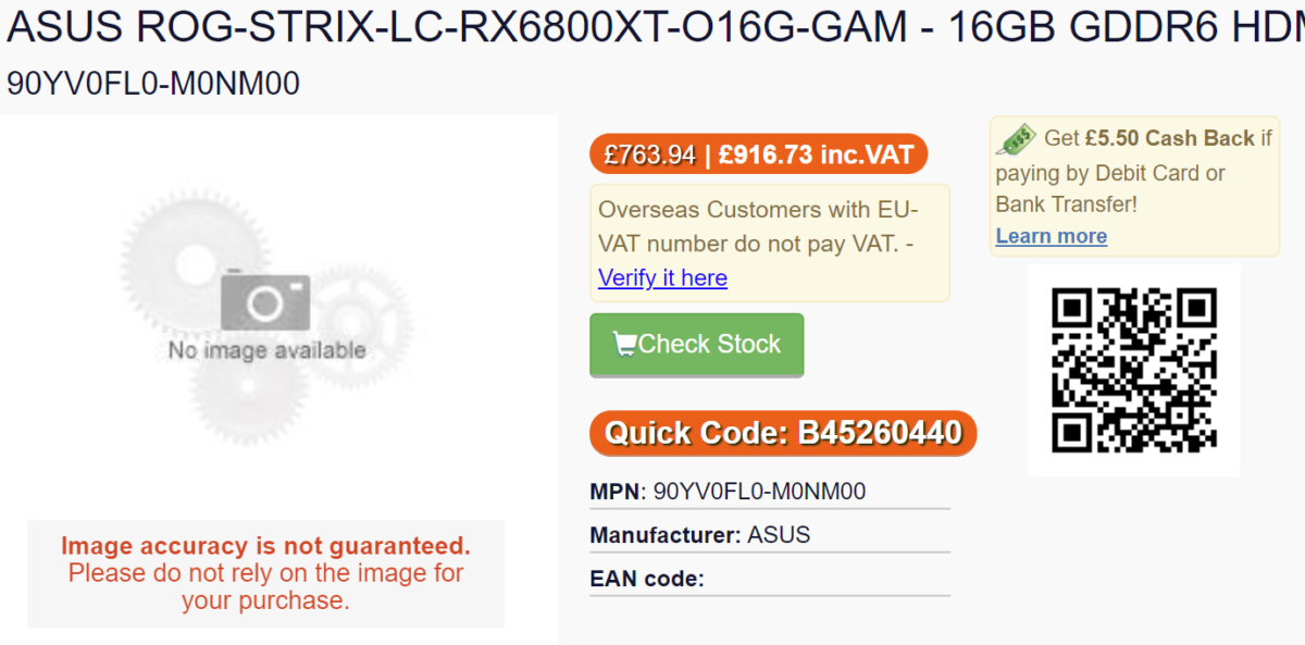 В Сети появляются все новые данные о стоимости видеокарт Radeon RX 6800, и пока ничего позитивного в них нет. Судя по каталогу одной из британский компаний, за разогнанный вариант Radeon RX 6800 XT производства Asus на местном рынке придется заплатить эквивалент 1070 долларов (цена с учетом НДС). Для сравнения, официальная стоимость видеокарты на рынке США – 650 долларов…