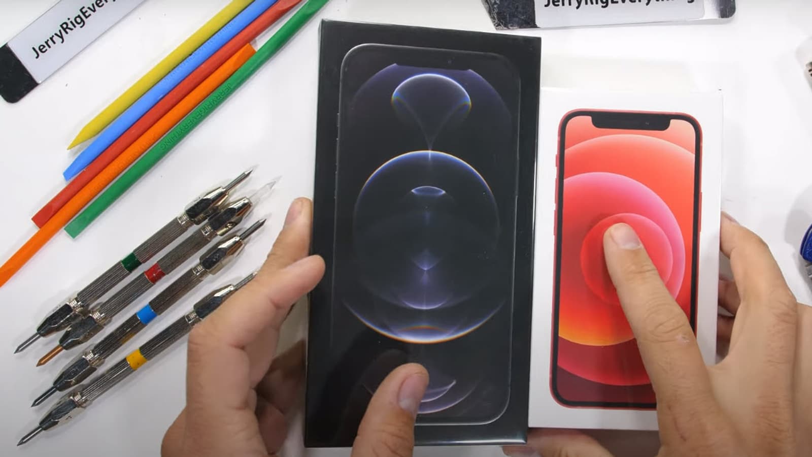 Известный техноблогер Зак Нильсон (Zach Nielsen), который ведёт на YouTube канал под названием JerryRigEverything, проверил на прочность новенькие смартфоны iPhone 12 mini и 12 Pro Max.