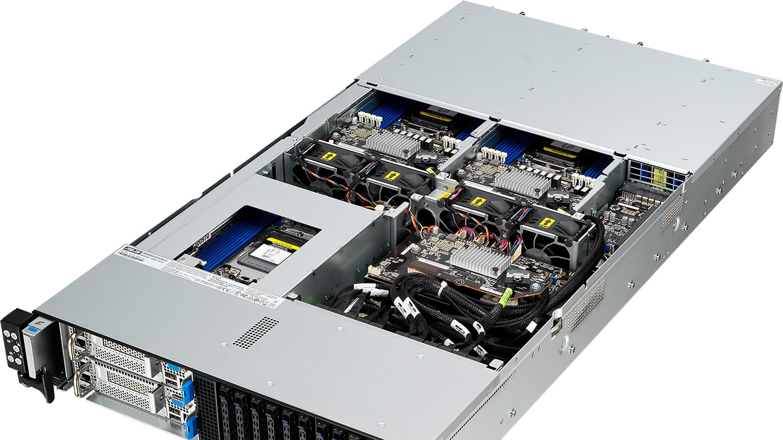 Конфигурация RS620SA-E10-RS12 включает шесть 64-ядерных процессоров AMD EPYC 7002, каждый из которых располагает слотом PCIe 4.0 x16 и слотом OCP 3.0. В слот PCIe 4.0 x16 можно установить низкопрофильную видеокарту, такую как Nvidia T4, для ускорения работы приложений, связанных с логическим выводом и искусственным интеллектом.