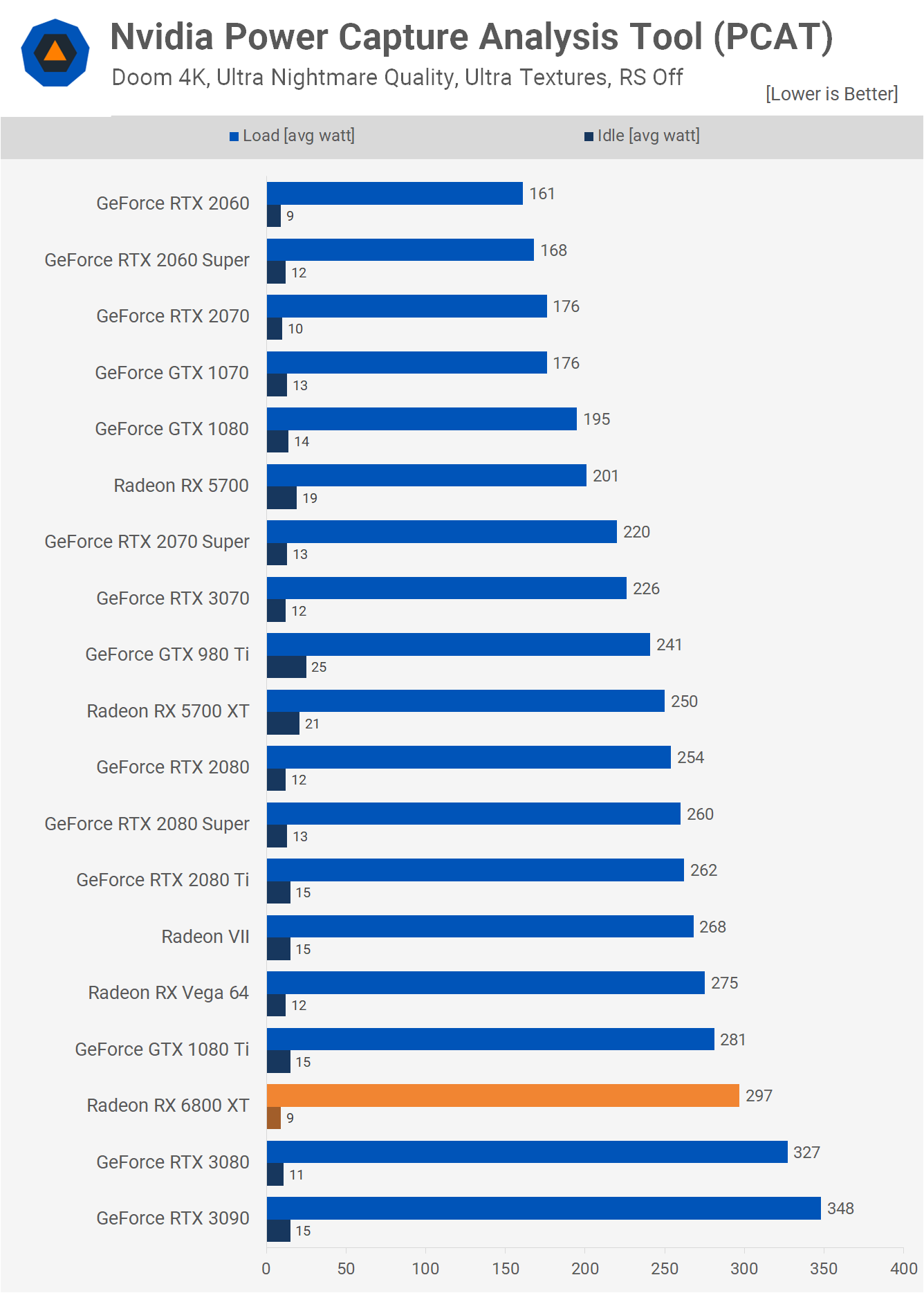 Как оказалось, в этом поколении AMD не только смогла догнать Nvidia по производительности видеокарт даже в топовом сегменте, но и обойти по энергоэффективности, ведь RX 6800 XT потребляет ощутимо меньше энергии, чем RTX 3080.