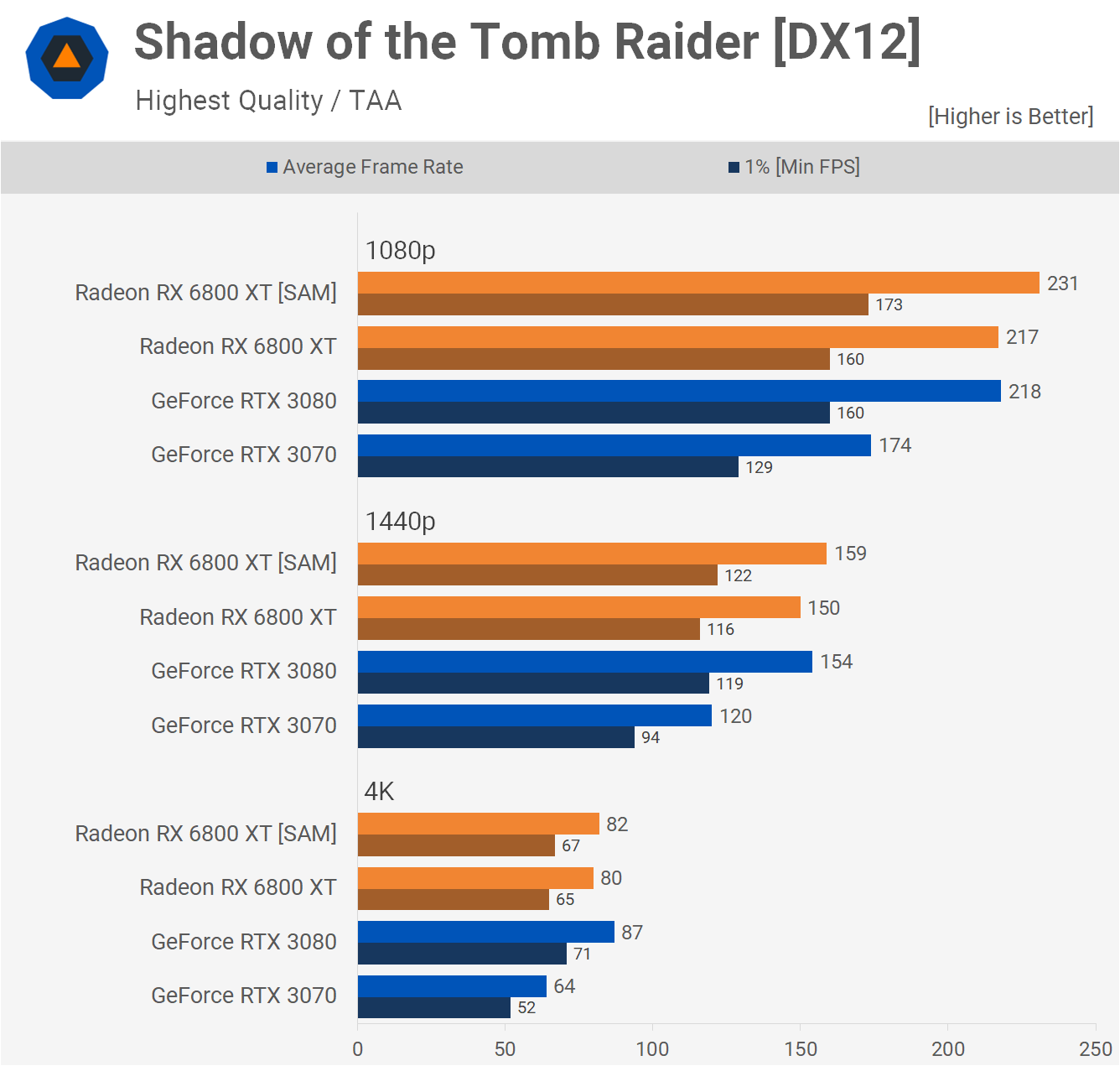 Отдельно нужно сказать про технологию Smart Access Memory, для которой сама AMD заявляла прирост производительности до 11%.