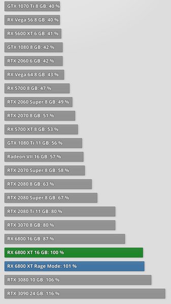 Итак, Radeon RX 6800 XT, согласно заявлениям самой AMD, должна быть на уровне GeForce RTX 3080, а RX 6800 должна быть быстрее RTX 3070.
