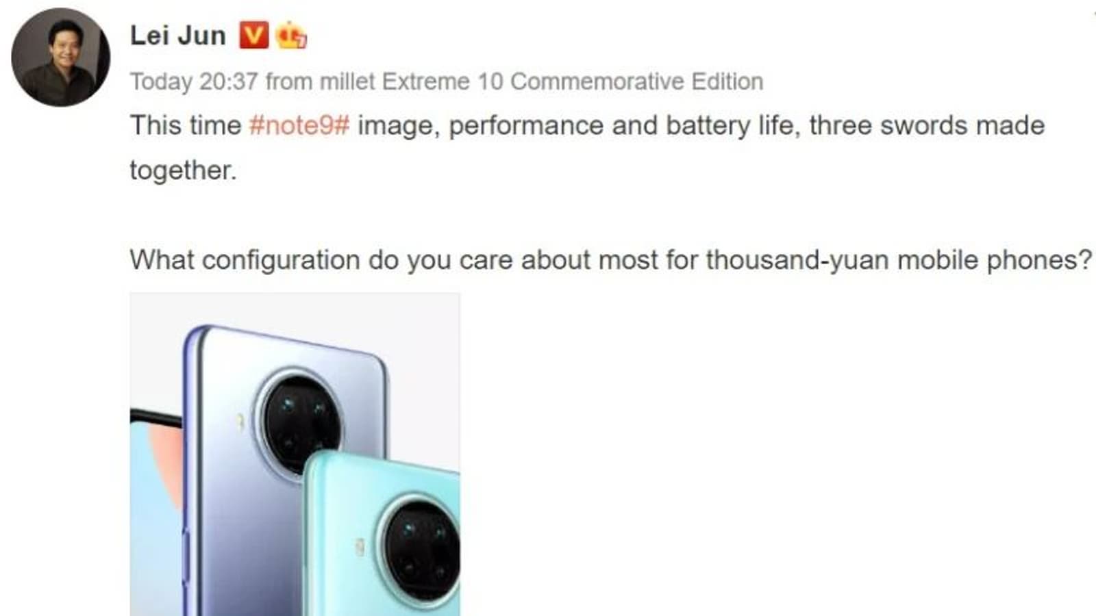 Глава Xiaomi Лей Цзунь (Lei Jun) рассказал в Weibo немного о смартфоне Redmi Note 9 5G – модели, которая должна выйти в Китае уже на следующей неделе. Сразу поясним, что на местном рынке Redmi Note 9 не выходил, поэтому для Китая это настоящая новинка. А на глобальном рынке этот смартфон, скорее всего, будет называться Redmi Note 10.