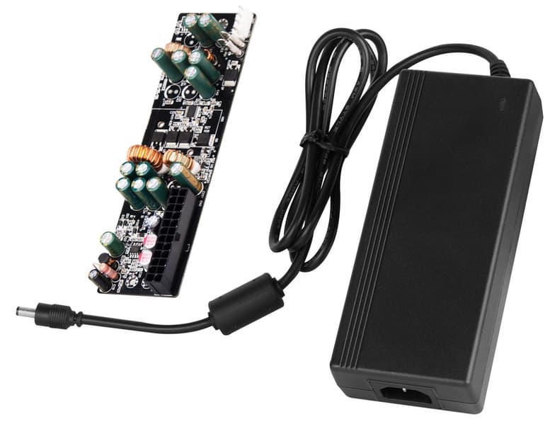 Адаптер комплектуется платой преобразователя, который преобразует это напряжение в напряжения на стандартном 24-контактном разъеме ATX. В комплект также входит кабель с 8-контактным разъемом EPS и другими разъемами питания. Размеры платы равны 160 x 25 x 45 мм. Преобразователь наделен защитой от пониженного и повышенного напряжения, перегрузки по току и короткого замыкания. Цену комплекта производитель не называет.