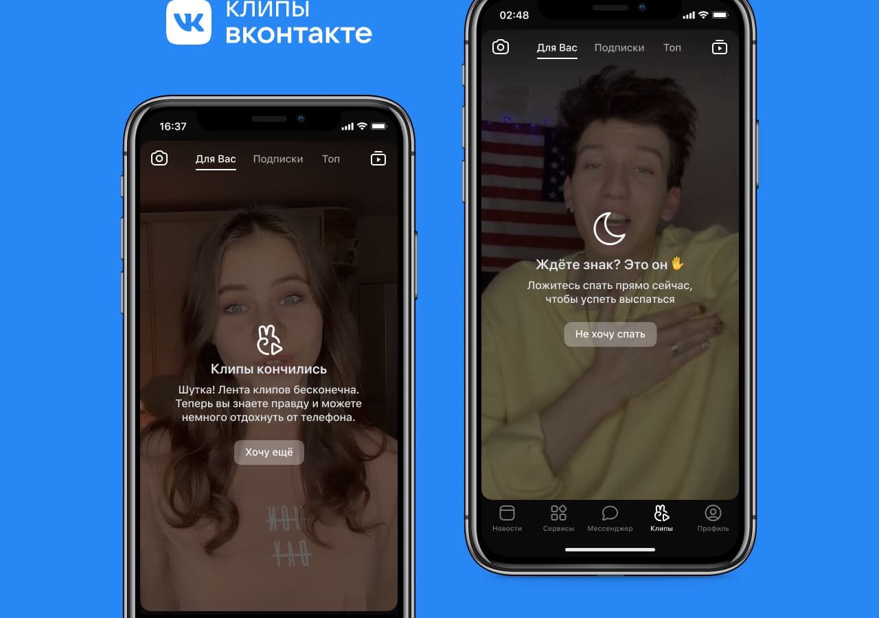 Команда соцсети даже провела исследование активности ночной аудитории «Клипов» — ленты коротких видео. Выяснилось, что некоторые проводят в ленте всю ночь. Количество просмотренных роликов доходит до 2 тысяч. И это только ночью. Днем пользователи, не соблюдающие «гигиену в сети», также могут отвлекаться на ролики, откладывая дела «на попозже».