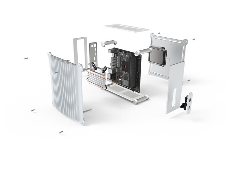 Корпус размерами 222 × 222 × 101 мм спроектирован специально для сборки компактной настольной системы с пассивным охлаждением на основе платы типоразмера mini-ITX. По оценке производителя, корпус способен отвести и рассеять тепло от процессора с TDP до 45 Вт. Для этого конструкция включает алюминиевые панели толщиной 4 мм и алюминиевый радиатор толщиной 21 мм. От процессора к радиатору тепло передается по медным тепловым трубкам диаметром 6 мм.