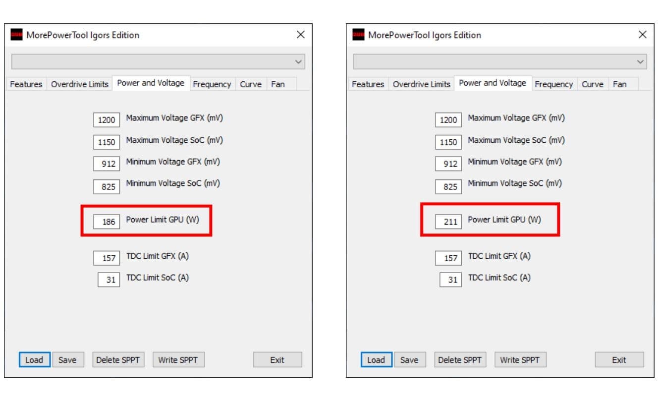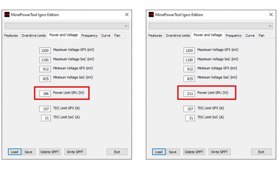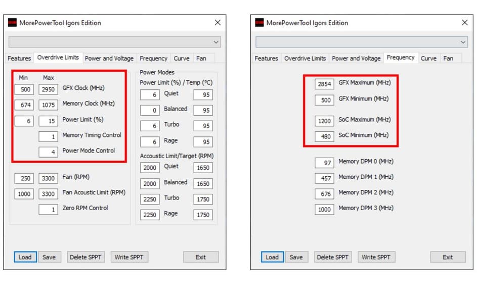 Анализ образов BIOS видеокарт серии Radeon RX 6700 с помощью программы MorePowerTool показал, что предел тактовой частоты GPU установлен равным 2854 МГц, а предел повышенной частоты — равным 2950 МГц. Уточним, что верхние пределы, а не рекомендованные производителем частоты. Для сравнения: RX 6800 XT имеет максимальную частоту разгона 2250 МГц, тогда как его предел, установленный в BIOS, составляет 2800 МГц. В одном из образов BIOS задано ограничение мощности 220 Вт, в другом — 186 Вт. Интересно, что карты имеют такое же ограничение тактовой частоты памяти, как у RX 6800 XT — 1075 МГц. Это означает, что память GDDR6 будет работать со скоростью 16 Гбит/с. С учетом вышеуказанной ширины шины памяти пропускная способность составит 384 ГБ/с.