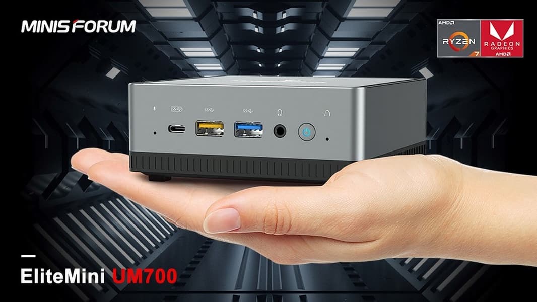Модель Minisforum EliteMini UM700 нельзя назвать сверхкомпактной, но это действительно очень маленький ПК габаритами 128 х 127 х 46 мм. И при этом он основан на достаточно производительном, хотя и не самом свежем процессоре — Ryzen 7 3750H. Напомним, это мобильное 45-ваттное решение с четырьмя процессорными ядрами и GPU Vega с 640 потоковыми процессорами. Последнее означает, что многие игры на минимальных настройках на таком мини-ПК вполне пойдут.