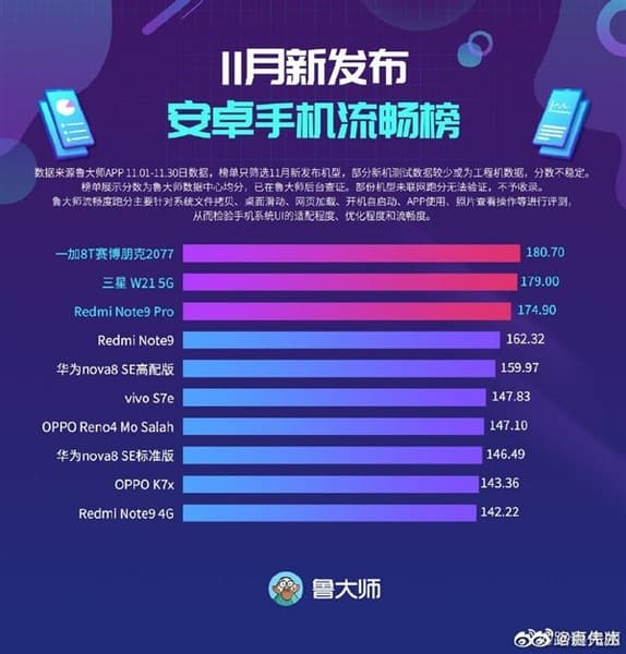 Руководитель Redmi републиковал рейтинг его на своей страничке в Weibo и сопроводил его словами о том, что новинки Redmi «можно покупать с закрытыми глазами». Имеется ввиду, что при цене, гораздо меньшей, чем у тех же OnePlus 8T Cyberpunk 2077 Limited Edition и Samsung Galaxy W21 5G, Redmi Note 9 5G и Redmi Note 9 Pro 5G обеспечивают практически аналогичную плавность работы. Эти модели стоят, напомним, всего $200-300 и базируются на однокристальных платформах Qualcomm Snapdragon 750G и MediaTek Dimensity 800U 5G соответственно.