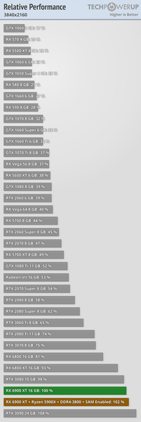 Как можно видеть, RX 6900 XT не дотягивает до RTX 3090 примерно столько же, сколько и RX 6800 XT до RTX 3080. Разница между картами лишь около 6-8%, а свою младшую сестру новинка AMD обходит примерно на 8-10%. Таким образом, как и в случае топовых карт Nvidia, целесообразнее однозначно младшая карта. Правда, стоит вспомнить, что RX 6900 XT стоит 1000 долларов, тогда как RTX 3090 — в полтора раза больше. Таким образом, если уж брать самые производительные решения, новинка AMD привлекательнее. Конечно, сейчас всё равно условно невозможно купить никакую из перечисленных карт по цене, хотя бы близкой к рекомендованной, но это уже отдельная история.