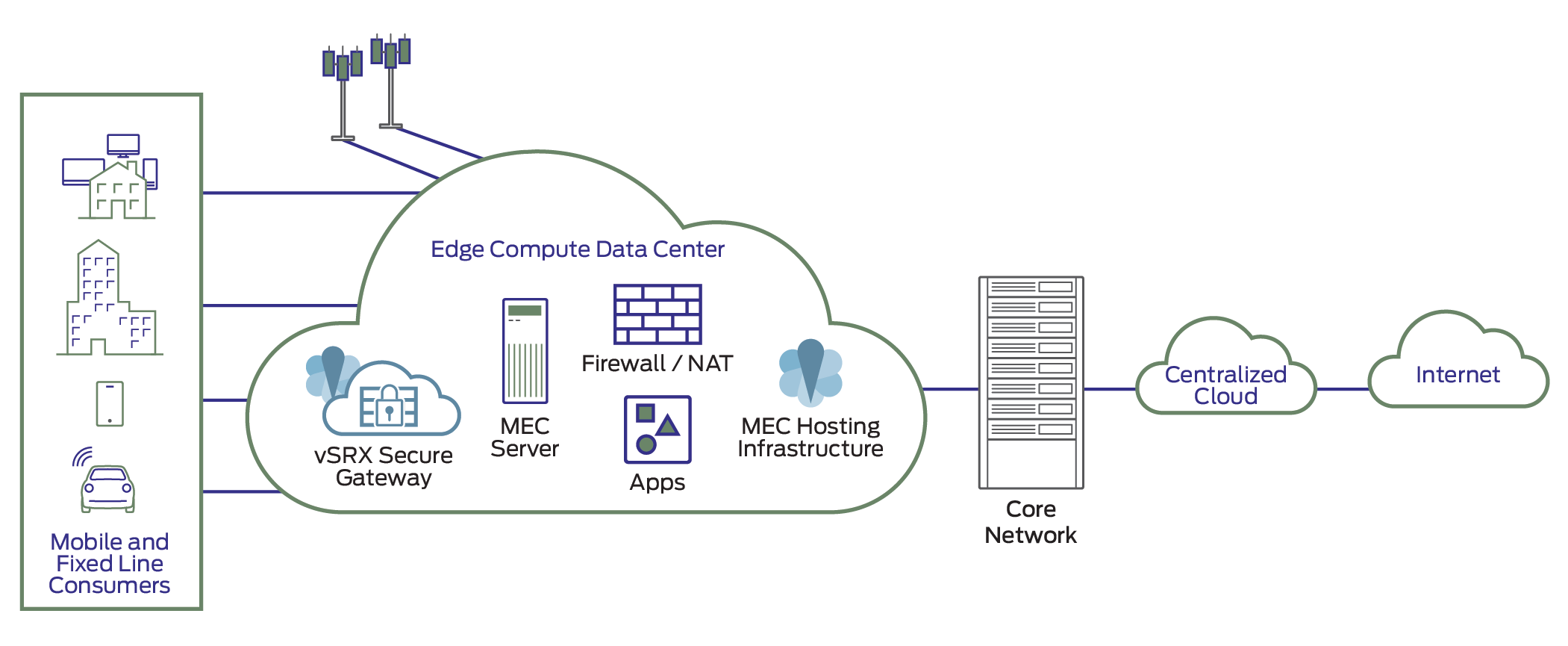 Архитектура MEC предлагает разработчикам приложений и поставщикам контента возможности облачных вычислений и среду IT-сервисов на периферии сети. Эта среда отличается сверхнизкой задержкой и высокой пропускной способностью, а также доступом в реальном времени к информации радиосети, которая может быть использована приложениями.