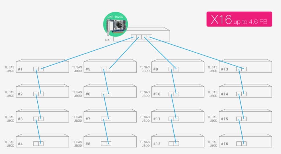 По словам производителя, QXP-1620S и QXP-820S можно гибко настраивать для различных сценариев использования. Возможность создания нескольких каналов и агрегации каналов между NAS и модулями расширения позволяет равномерно распределять нагрузку и предотвращать возникновение узких мест и сбои.